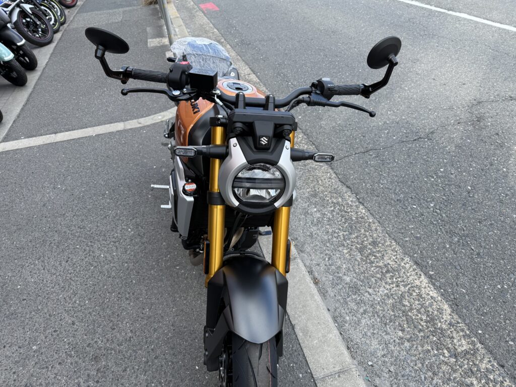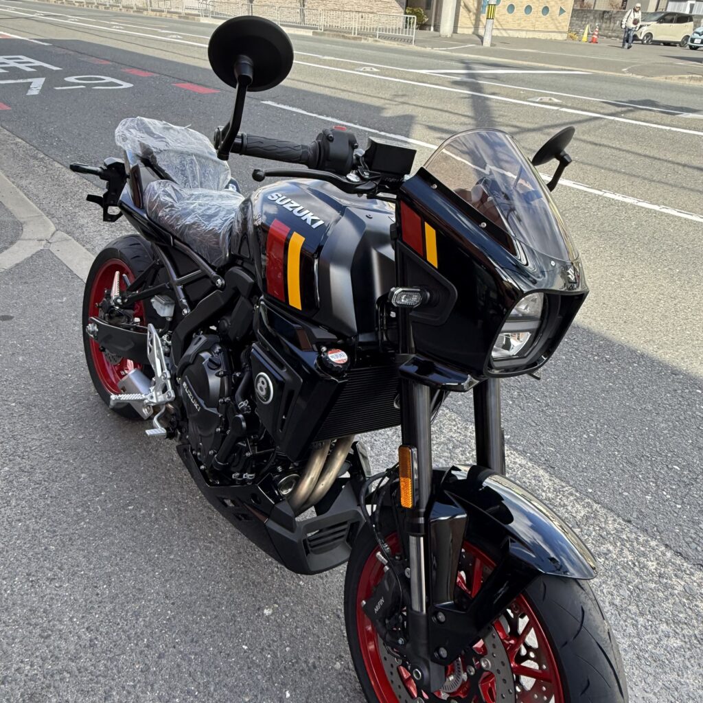 アルミダイカスト製ステーを採用しデザイン性と後方確認のし易さとクリアな前方視界を確保!さらに配光特性の優れた新開発丸型LEDヘッドランプを採用!そしてGSX-8S・8Rなどで評判の775ccパラレルツインエンジン採用で鼓動を感じられる新しいプレミアムミドルとして発売を開始しました!